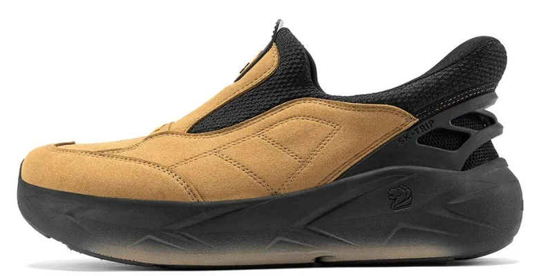 搭载FlexWrap软回弹支撑滑入系统,鞋后跟桥拱形机械结构设计稳定器+弹性体,当脚跟踩入时受挤压暂时变形塌陷让出空间容纳脚部脚踩下去后,支架迅速反弹复位锁住脚后跟。